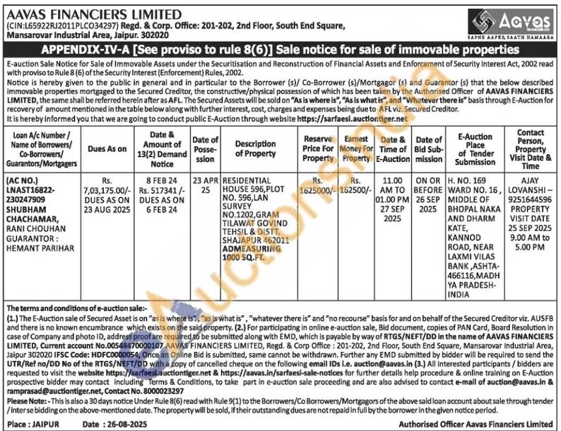 RESIDENTIAL HOUSE 596, PLOT NO. 596, LAN SURVEY NO.1202, GRAM TILAWAT GOVIND TEHSIL & DISTT. SHAJAPUR 462011 ADMEASURING 1000 SQ.FT.