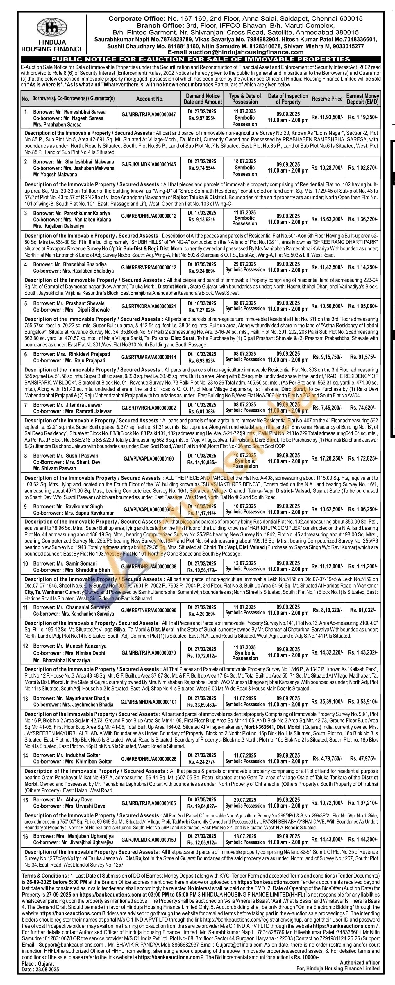 Description of the Immovable Property / Secured Assests: All that pieces and parcels of immovable property comprising NA land 82-51 Sq.mt. Of Plot No.35 of Revenue Survey No.1257p5/p1/p1/p1 of Taluka Jasdan & Dist.Rajkot in the State of Gujarat Boundaries of the said property are as under; North: land of Survey No. 1257, South: Plot No.34, East: Road, West: land of Survey No. 1257