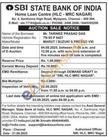Vehicle Registration No TN 85 P 9427 Make/Model MARUT I SUZUKI S PRESSO VXI