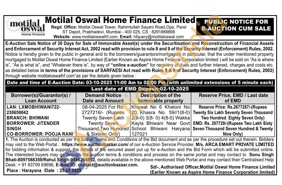 Khewat No 6 Khatoni No 20 Khasra No. 59//1(8-0) 2(8-0) 3(8-0) 4(8-0) Wakka Kayla Bhiwani Near Govt School Bhiwani Haryana 127021