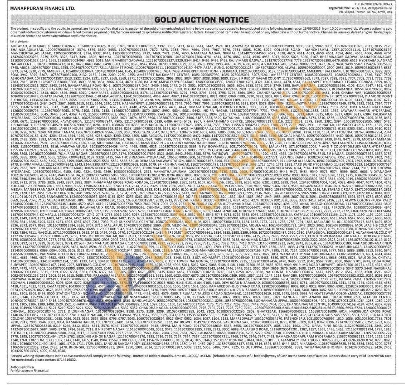 Manappuram Finance Ltd Gold Auctions Auction in Adilabad