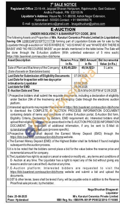 Sale of Plant and Machinery of the Company (Sale ofassets on Standalone basis)