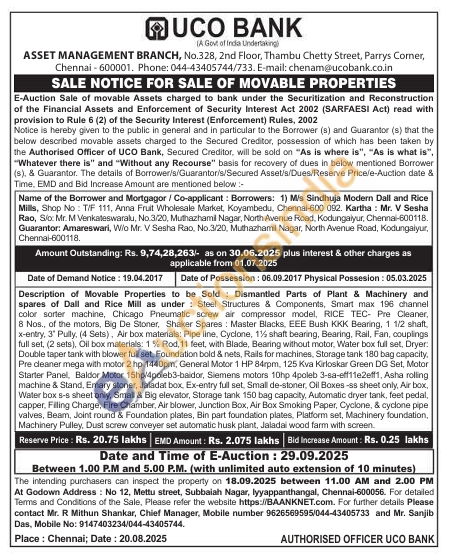 Contact Mr. R Mithun Shankar, Chief Manager, Mobile number 9626569595/044-43405733 and Mr. Sanjib Das, Mobile No: 9147403234/044-43405744