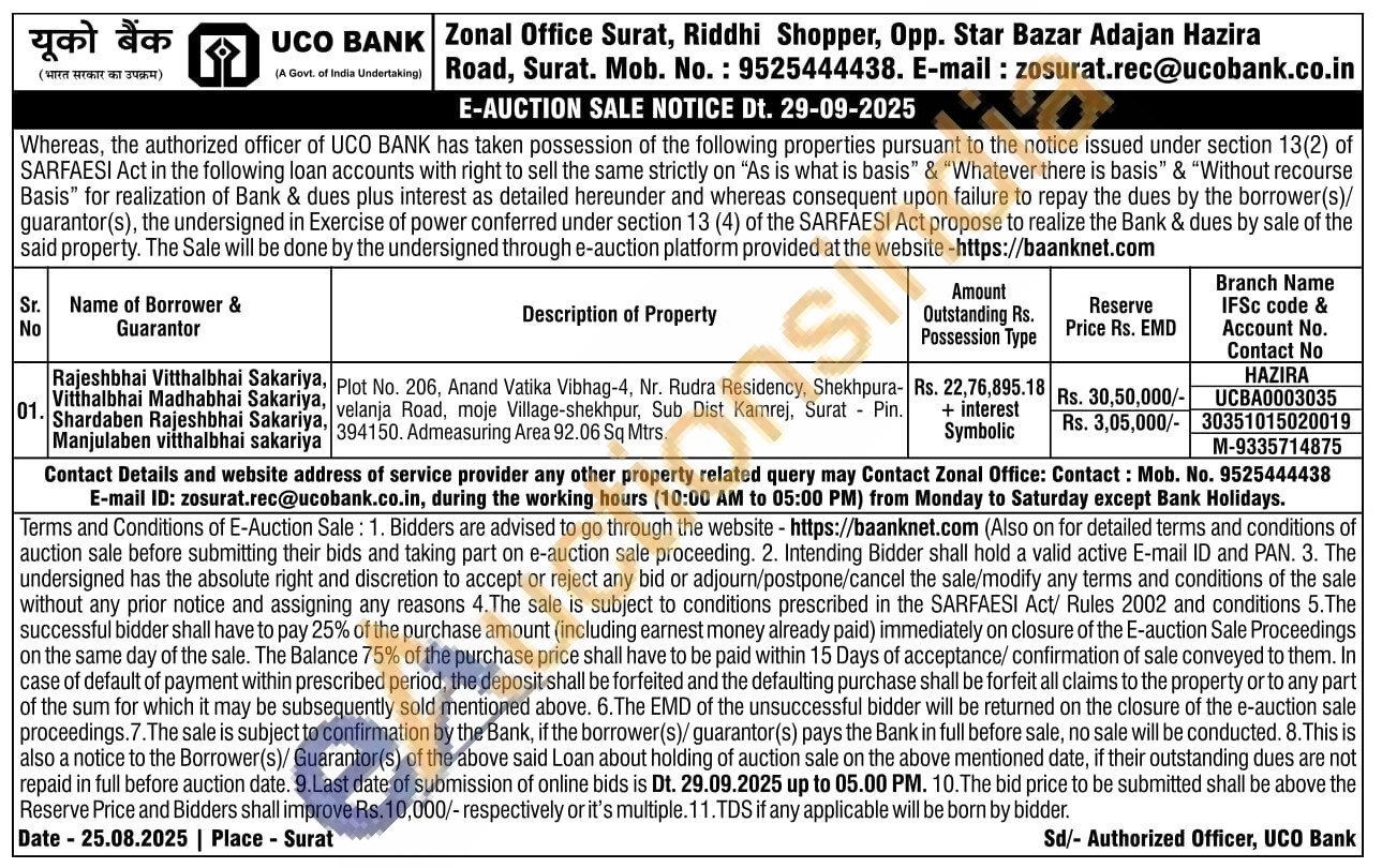 Contact Zonal Office: Contact: Mob. No. 9525444438 E-mail ID: zosurat.rec@ucobank.co.in