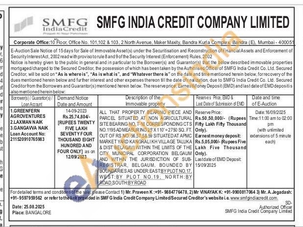ALL THAT PROPERTY BEARING PIECE AND PARCEL SITUATED AT NON AGRICULTURAL SITE BEARING NO. T-18 CORRESPONDING CTS NO. 1195 AD MEASURING 25 X 110'-2750 SQ. FT. OUT OF RS NO. 56,57,58,59 SITUATED AT APMC MARKET YARD KANGRALIKH VILLAGE TALUKA & DIST BELAGAVI WITHIN THE LIMITS OF THE CITY MUNICIPAL CORPORATION BELGAUM AND WITHIN THE JURISDICTION OF SUB-REGISTRAR, BELGAUM, BOUNDED BY BOUNDARIES AS UNDER EAST BY PLOT NO. 17. WEST:BY PLOT NO.19, NORTH:BY ROAD, SOUTH BY ROAD