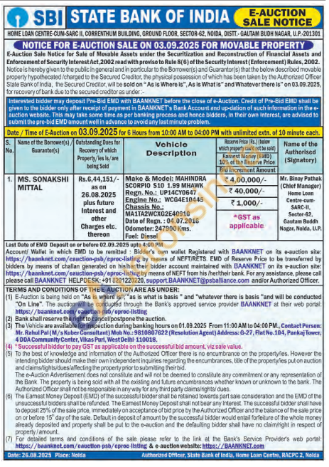 Make & Model: MAHINDRA SCORPIO S10 1.99 MHAWK Regn. No.: UP14CY0647 Engine No.: WCG4E10445 Chassis No. MA1TA2WCXG2E40910 Date of Regn.: 04.07.2016 Odometer: 247900 Kms. Fuel: Diesel
