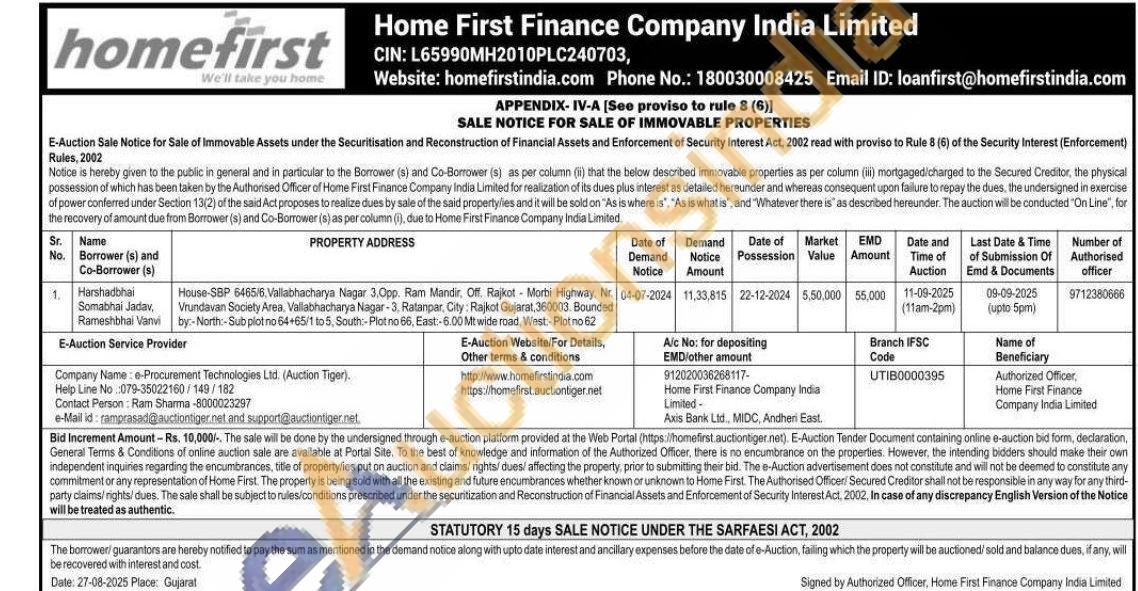 House-SBP 6465/6, Vallabhacharya Nagar 3.0pp. Ram Mandir, Off. Rajkot-Morbi Highway, Nr. Vrundavan Society Area, Vallabhacharya Nagar-3. Ratanpar, City: Rajkot Gujarat, 360003 Bounded by:-North-Sub plot no 64+65/1 to 5, South:-Plot no 66, East:-6:00 Mt wide road, West-Plotno 62