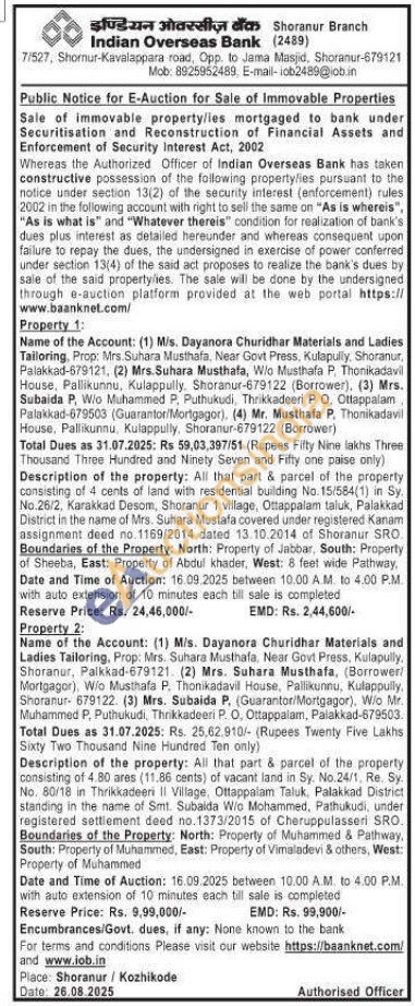 Description of the property: All that part & parcel of the property consisting of 4.80 ares (11.86 cents) of vacant land in Sy. No.24/1, Re. Sy. No. 80/18 in Thrikkadeeri II Village, Ottappalam Taluk, Palakkad District standing in the name of Smt. Subalda Wio Mohammed, Pathukudi, under registered settlement deed no.1373/2015 of Cheruppulasseri SRO. Boundaries of the Property: North: Property of Muhammed & Pathway, South: Property of Muhammed, East: Property of Vimaladevi & others, West: Property of Muhammed