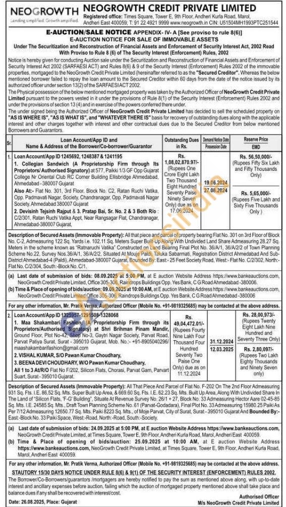 All That Piece And Parcel of Flat No. F-202 On The 2nd Floor Admeasuring 931 Sq. Fts. IE, 86.52 Sq. Mts. Super Built Up Area, & 669.60 Sq. Fts. 1.E. 62.23 Sq. Mts. Built Up Area, Along With Undivided Share In The Land of "Silicon Flats, 'F-G' Building", Situate At Revenue Survey No. 26/127, Block No. 33 Admeasuring Hector Aare 02-45-85 Sq. Mts. LE 24585 Sq. Mts., Draft Town Planning Scheme No. 61 (Parvat-Godadara), Final Plot No. 33 Admeasuring 15980 25 Paki As Per 7/12 Admeasuring 12650.77 Sq. Mts. Paiki 8223 Sq. Mts, of Moje Parvat, City of Surat, Surat-395010 Gujarat And Bounded By:-East-Block No. 33 Paki Space, West-Road, North-Road, South-Society,