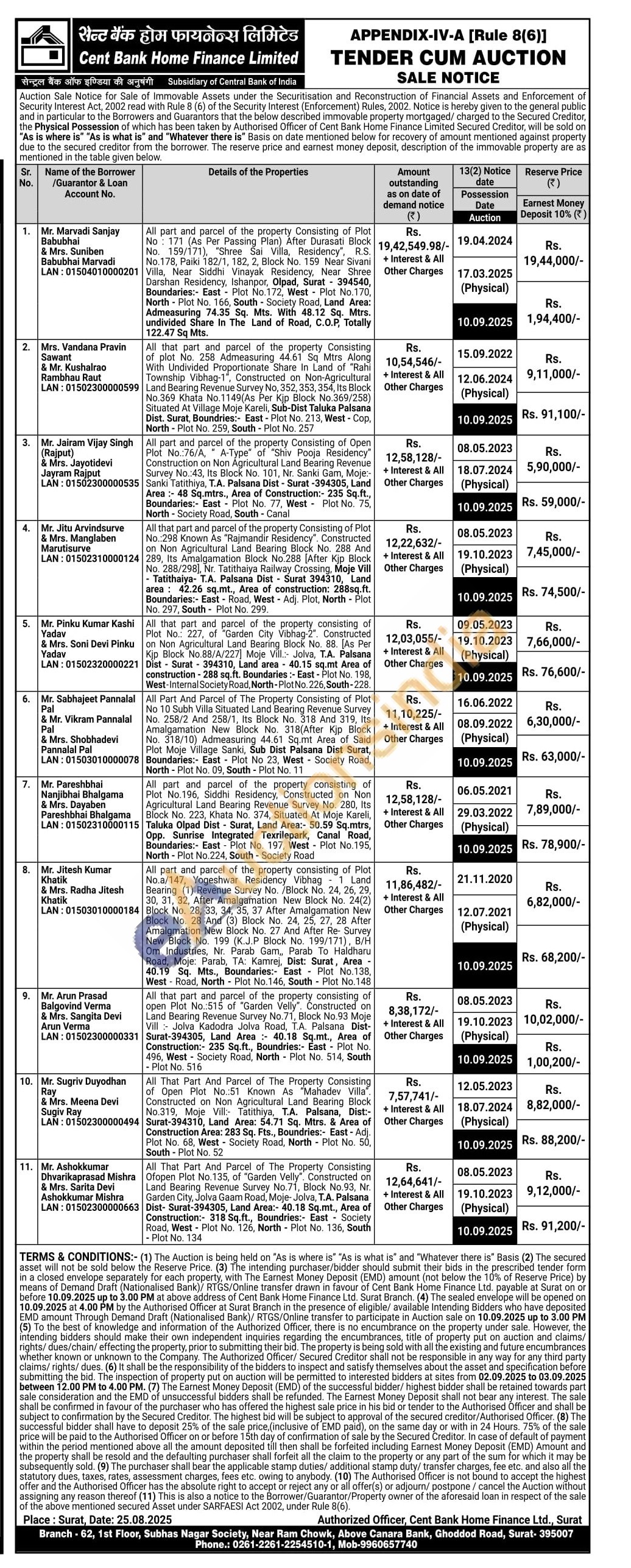 All part and parcel of the property Consisting of Plot No: 171 (As Per Passing Plan) After Durasati Block No. 159/171), "Shree Sai Villa, Residency", R.S. No.178, Paiki 182/1, 182, 2, Block No. 159 Near Sivani Villa, Near Siddhi Vinayak Residency, Near Shree Darshan Residency, Ishanpor, Olpad, Surat 394540, Boundaries: East Plot No.172, West - Plot No.170, North Plot No. 166, South Society Road, Land Area: Admeasuring 74.35 Sq. Mts. With 48.12 Sq. Mtrs. undivided Share In The Land of Road, C.O.P, Totally 122.47 Sq Mts.