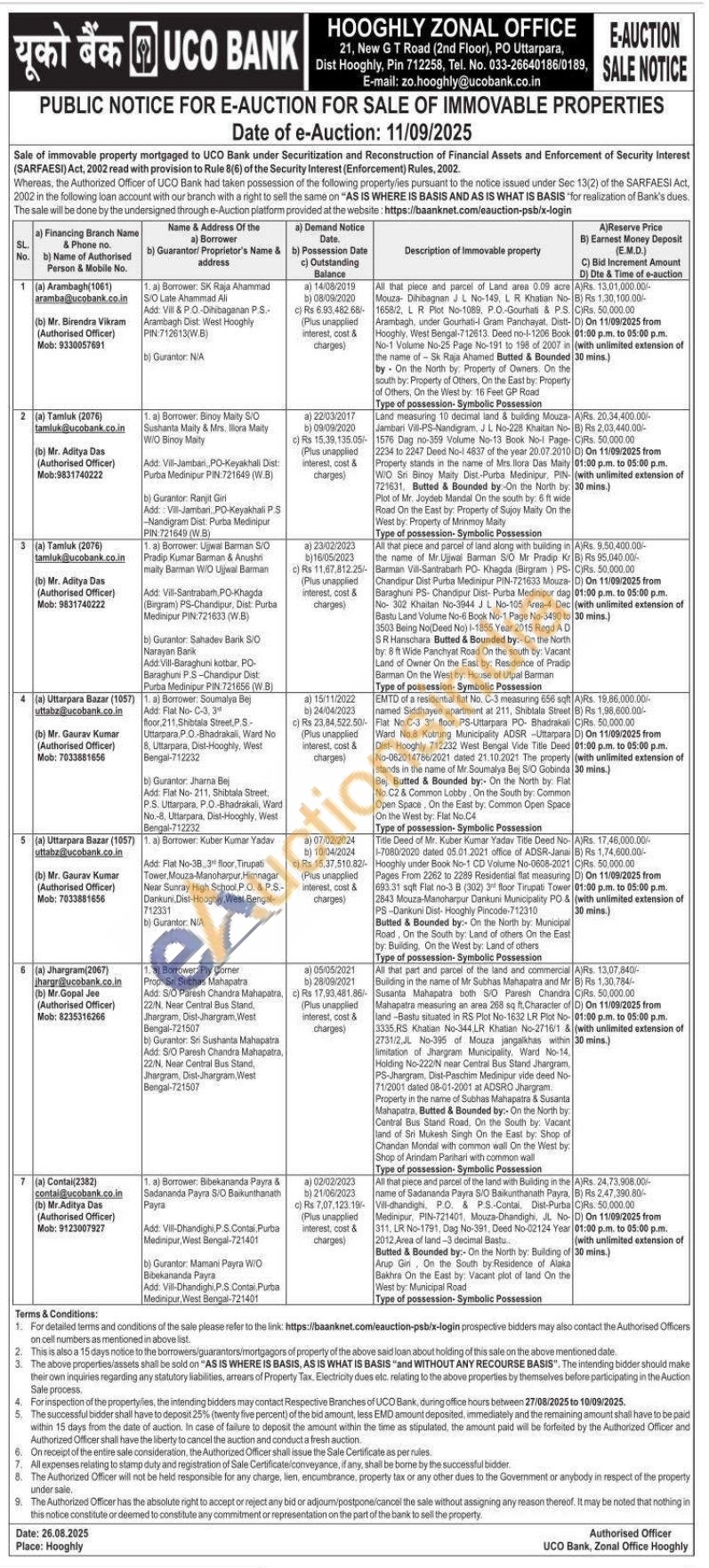 Contact Mr. Aditya Das (Authorised Officer) Mob:9831740222
