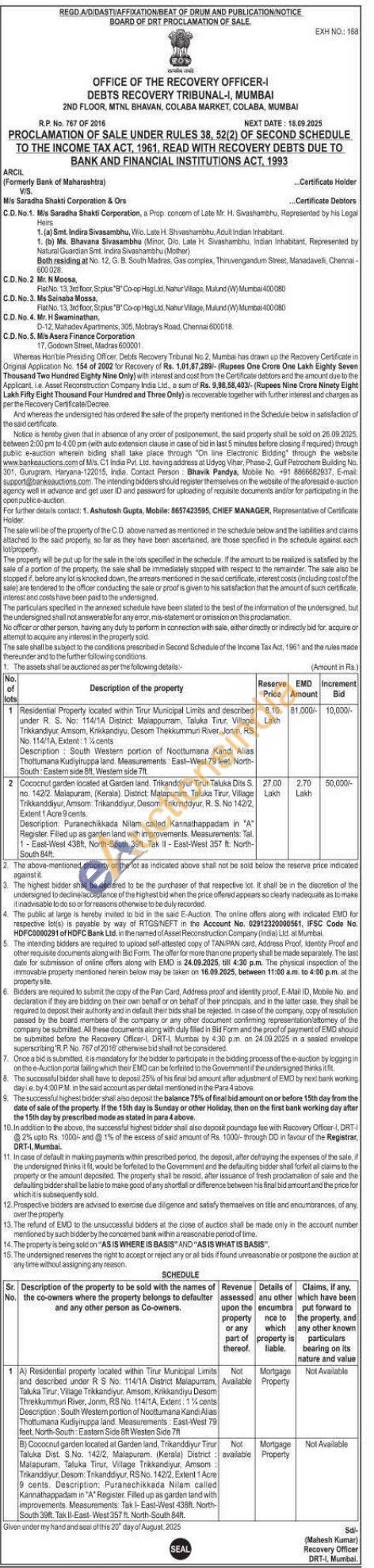 Cocoonut garden located at Garden land. Trikanddiyur Tirur Taluka Dits S. no. 142/2 Malapuram, (Kerala) District Malapuram. Taluka Tirur, Village Trikkanddiyur, Amsom Trikanddiyur, Desom: Triknnddyur, R. S. No 142/2, Extent 1 Acre 9 cents