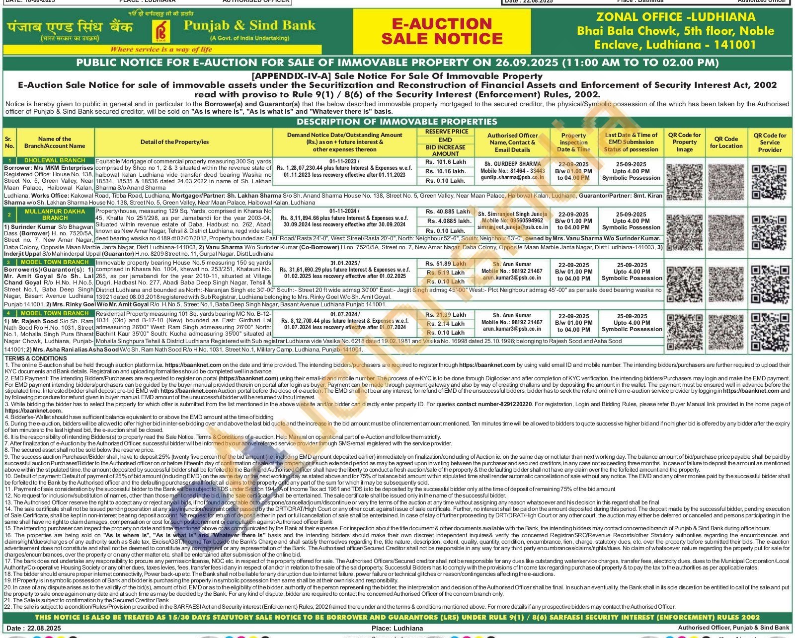 Immovable property bearing House No. 5 measuring 150 sq yards comprised in Khasra No. 1004, khewat no. 253/251, Khatauni No 265, as per jamabandi for the year 2010-11, situated at Village Dugri, Hadbast No. 277, Abadi Baba Deep Singh Nagar, Tehsil & District Ludhiana and bounded as North:-Naranjan Singh etc 30-00 South:- Street 20 ft wide admsg 30'00" East:- Jagjit Singh admsg 45-00" West:- Plot Neighbour admsg 45-00" as persale deed bearing wasika no 13921 dated 08.03.2018 registered with Sub Registrar, Ludhiana belonging to Mrs. Rinky Goel WWo Sh. Amit Goyal