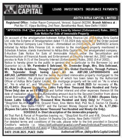 All That Part & Parcel of Properties bearing no.: "Shop/Unit No.41A and 41B, Ground Floor, Eros Metro Mall, Plot No.8, Sector-14 Dwarka City Centre, New Delhi-110075