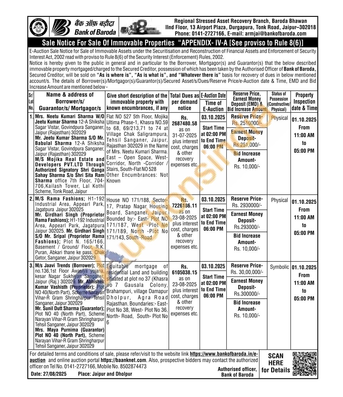 authorized officer on Tel No. 0141-2727166, Mobile No. 8502874473
