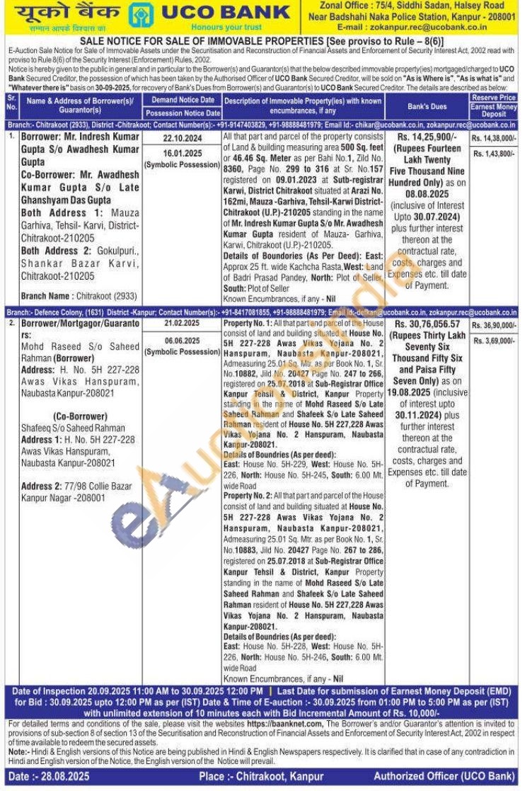 All that part and parcel of the property consists of Land & building measuring area 500 Sq. feet or 46.46 Sq. Meter as per Bahi No.1, Zild No. 8360, Page No. 299 to 316 at Sr. No.157 registered on 09.01.2023 at Sutb-registrar Karwi, District Chitrakoot situated at Arazi No. 162mi, Mauza-Garhiva, Tehsil-Karwi District-Chitrakoot (U.P)-210205 standing in the name of Mr. Indresh Kumar Gupta S/o Mr. Awadhesh Kumar Gupta resident of Mauza- Garhiva, Karwi, Chitrakoot (UP)-210205.