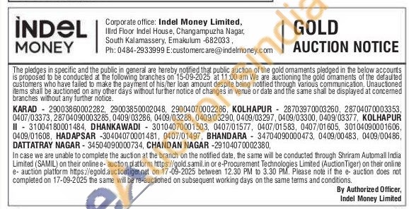Indel money ltd Gold Auctions Auction in Kolhapur