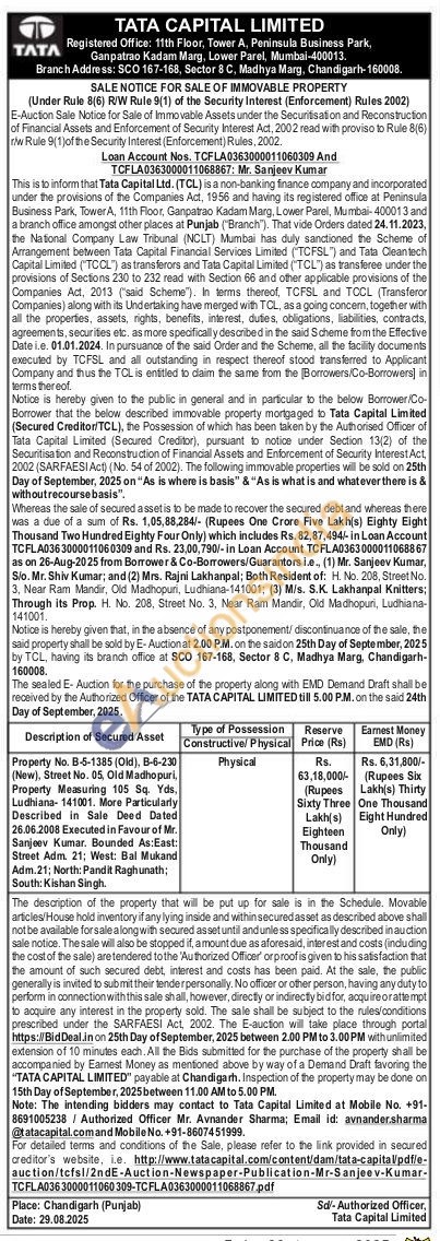 Property No. B-5-1385 (Old), B-6-230 (New), Street No. 05, Old Madhopuri, Property Measuring 105 Sq. Yds, Ludhiana-141001. More Particularly Described in Sale Deed Dated 26.06.2008 Executed in Favour of Mr. Sanjeev Kumar. Bounded As: East: Street Adm. 21; West: Bal Mukand Adm.21; North: Pandit Raghunath; South: Kishan Singh.