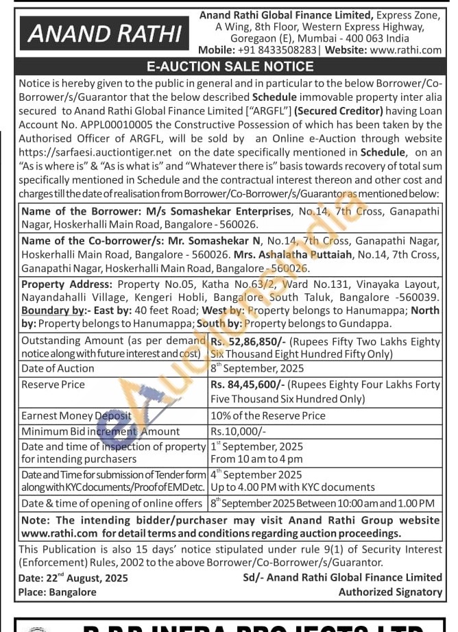 Property Address: Property No.05, Katha No.63/2, Ward No.131, Vinayaka Layout, Nayandahalli Village, Kengeri Hobli, Bangalore South Taluk, Bangalore -560039. Boundary by:- East by: 40 feet Road; West by: Property belongs to Hanumappa; North by: Property belongs to Hanumappa; South by: Property belongs to Gundappa