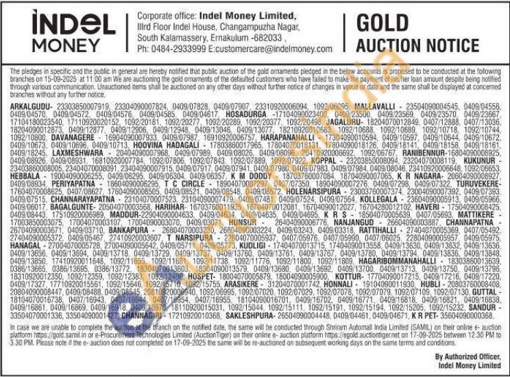 Indel money ltd Gold Auctions Auction in Hassan
