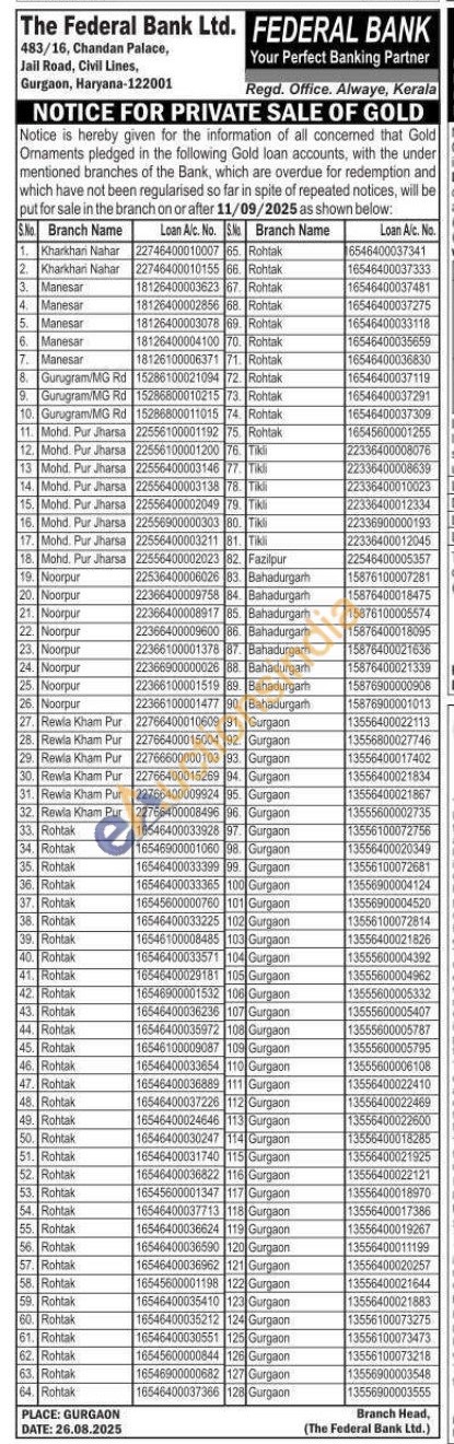 Federal Bank Gold Auctions Auction in Rohtak