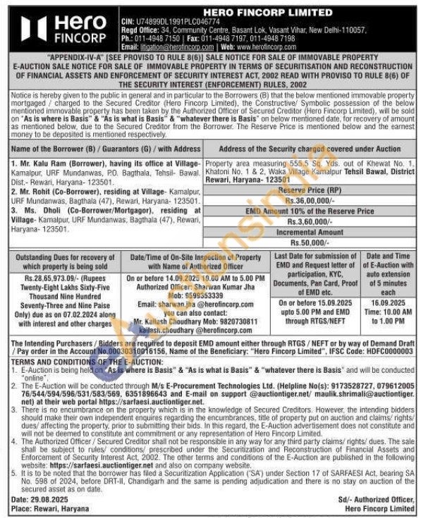 Property area measuring 555.5 Sq. Yds. out of Khewat No. 1. Khatoni No. 1 & 2. Waka Village Kamalpur Tehsil Bawal, District Rewari, Haryana-123501