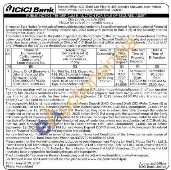 Pvt. Plot No. 121, Khasra No. 726, Plot Situated in Mauza Kazipura, Moradabad-UP. Area: 1618 Sq Ft Property-Type: Residential Plot