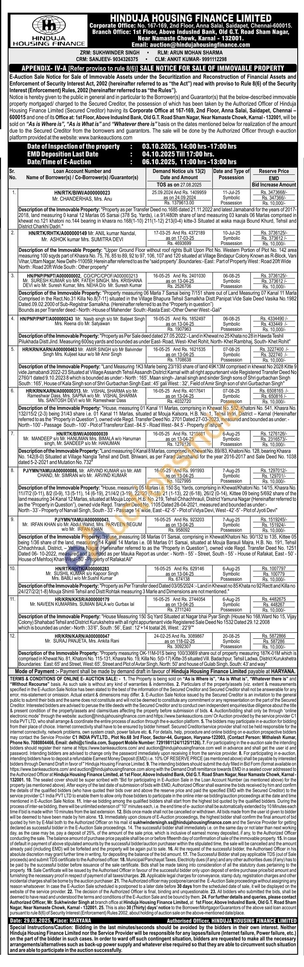 "House, measuring 01 Kanal 11 Marlas, comprising in Khewat No. 532, Khatoni No. 541, Khasra No. 132//15/2 (2-3) being 31/43 share i.e. 01 Kanal 11 Marlas, situated at Mouja Kalsora, H.B. No. 1, Tehsil Indri, District – Karnal (Hereinafter referred to as the “Property in Question”), owned vide Regd.Transfer Deed No. 2701 Dated 27-03-2023, measured and bounded as under: - North - 100’- Passage South - 100’- Plot ofTransferor East - 84.5’- Road West- 84.5’- Property of Ishpal"