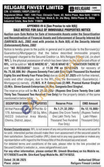 All that Piece and parcel of Plot No. G 179. Admeasuring 1717.50 Sq. Mtrs. RICCO Industrial Area Manda, Chomu, District, Jaipur,