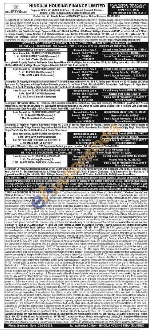 Description Of Property: Freehold residential flat no TF-3 on third floor built on Plot No. 41 & 42 falling under Khasra no. 1241 situated at Krishan Apartment Raj Compound in Village Shahpur Bamheta, pargana Dasna Tehsil & Distt. Ghaziabad (U.P.). Boundaries: East-Property Of digar, West-Flat no. TF 4, North-Property of digar, South-Rasta 20 ft. wide & entry Passage of Gallery Gate