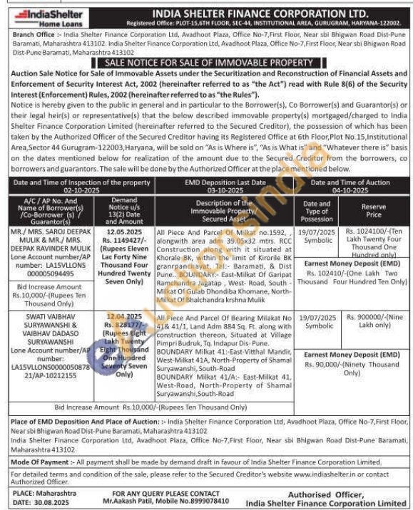 All Piece And Parcel Of Bearing Milakat No 418 41/1, Land Adm 884 Sq. Ft. along with construction thereon, Situated at Village Pimpri Budruk, To, Indapur Dis-Pune. BOUNDARY Milkat 41: East-Vitthal Mandir, West-Milkat 41A, North-Property of Shamal Suryawanshi, South-Road BOUNDARY Milkat 41/A:- East-Milkat 41, West-Road, North-Property of Shamal Suryawanshi, South-Road