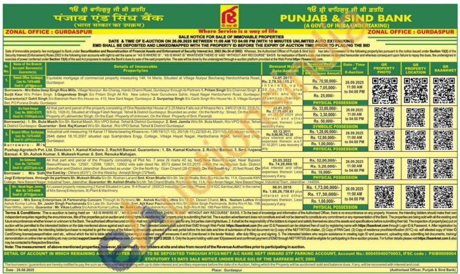All that part and parcel of the property consisting of One Residential House of 3.25 Malra Falls out of Khasra No's. 24R//21(8-0), 22(8-0). 9(8-0), 10(8-0), Situated at Village Fateh Nangal, Tehsil & District Gurdaspur. Bounded as under: On the North by: Street, On the South: Property of Lakhwinder Singh, On the East: Property of Unknown, On the West: Property of Smt. Paramjit