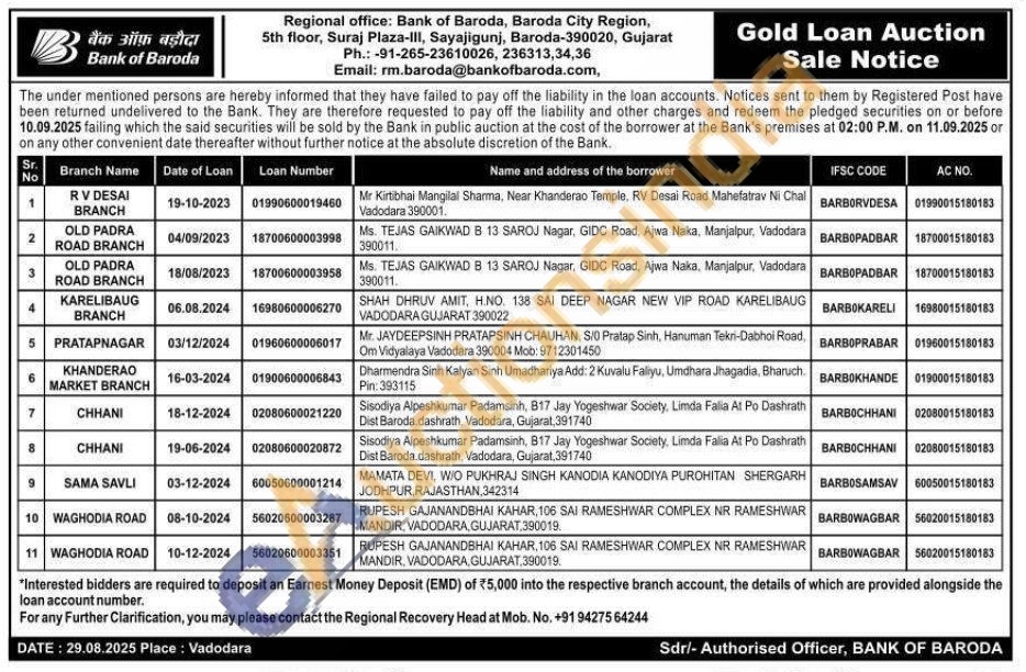 Bank of Baroda Gold Auctions Auction in Vadodara