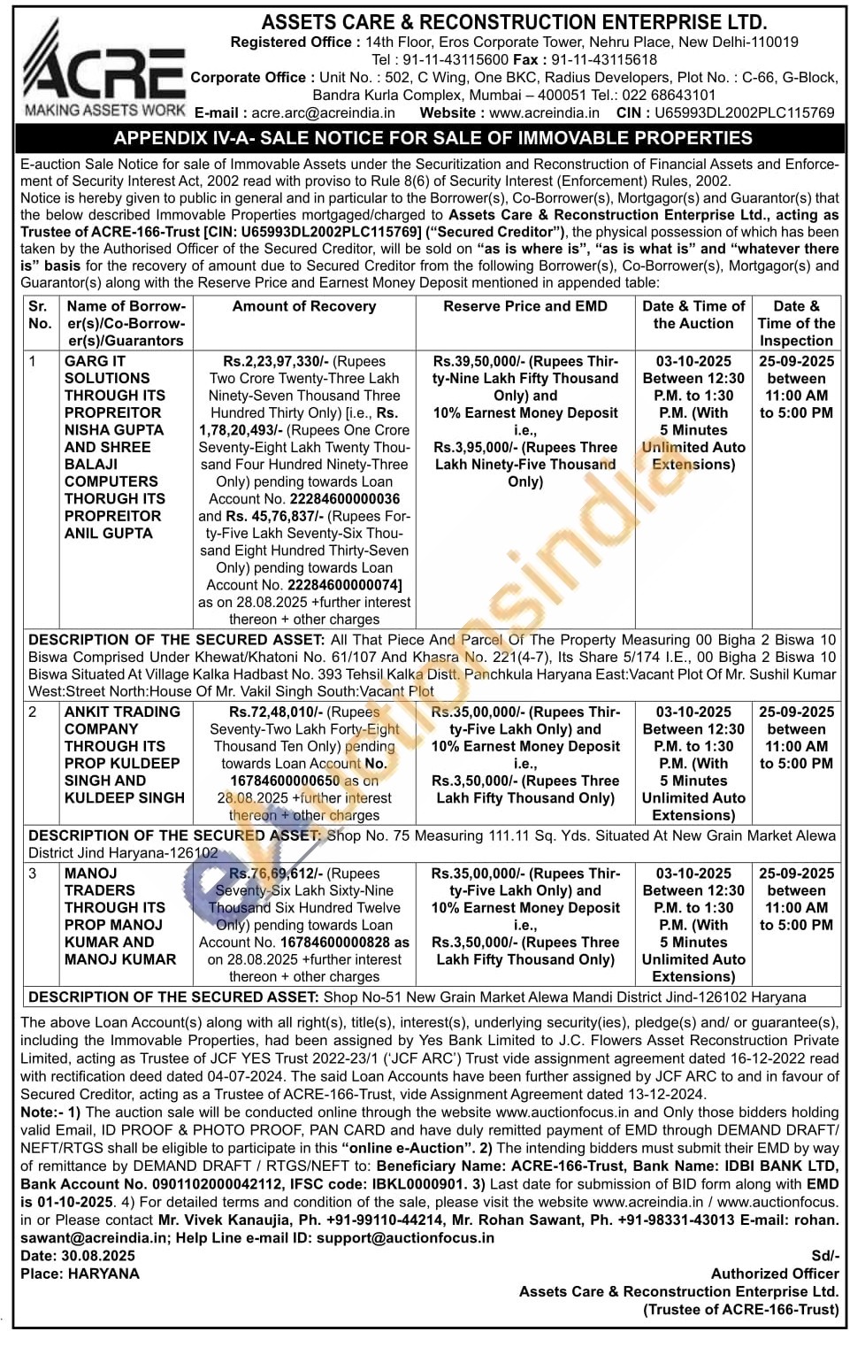DESCRIPTION OF THE SECURED ASSET: Shop No-51 New Grain Market Alewa Mandi District Jind-126102 Haryana