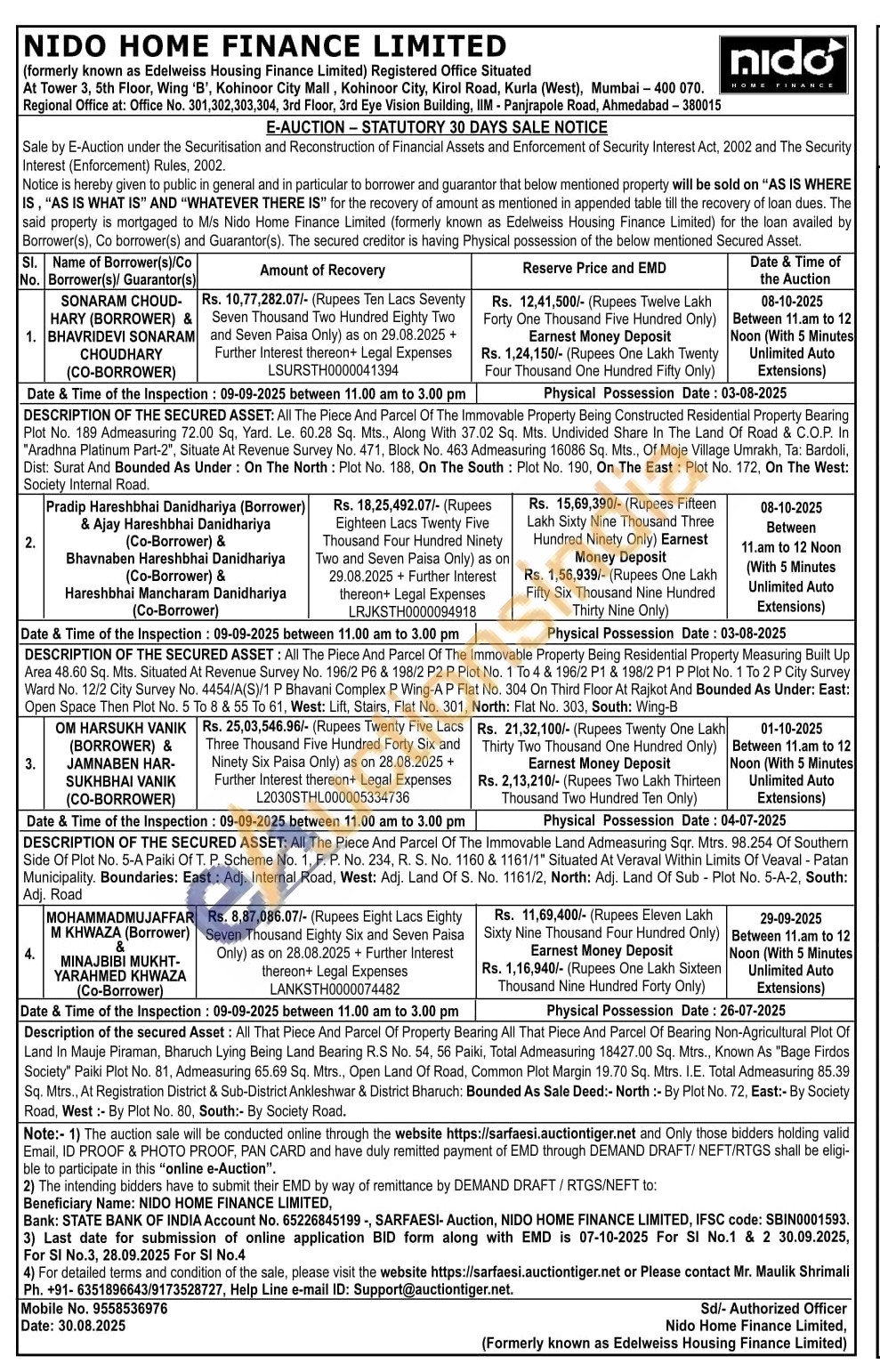 DESCRIPTION OF THE SECURED ASSET: All The Piece And Parcel Of The Immovable Land Admeasuring Sqr. Mtrs. 98.254 Of Southern Side Of Plot No. 5-A Paiki Of T. P. Scheme No. 1, F. P. No. 234, R. S. No. 1160 & 1161/1" Situated At Veraval Within Limits Of Veaval - Patan Municipality. Boundaries: East: Adj. Internal Road, West: Adj. Land Of S. No. 1161/2, North: Adj. Land Of Sub - Plot No. 5-A-2, South: Adi. Road