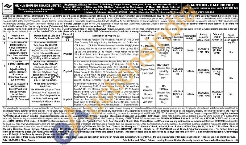 All that Piece and Parcel of The Residential Flat No. D-1404 On 14th Floor Of Merry Gold Heights Laying And Being On Land Of Plot No Of F.P. No. 8/1, T.PS-24 Of Rajkot Revneue Survey No. 616(P)5, Rajkot City Survey Ward No. 18, City Survey No. 1944/1. (Built Up Area 56-10 Sq.Mts.) And Boundaries Of The Property: North: Margin And 60 Feet Wide Road. South: Stairs, Passage And Flat No. D-1401. East: Margin And 80-00 Feet Road. West: Flat No. D- 1403