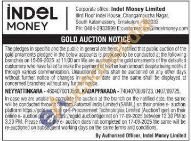 Indel money ltd Gold Auctions Auction in Thiruvananthapuram