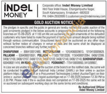 Indel money ltd Gold Auctions Auction in Tiruppur