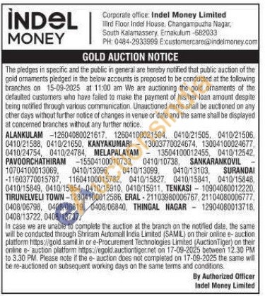 Indel money ltd Gold Auctions Auction in Virudhunagar