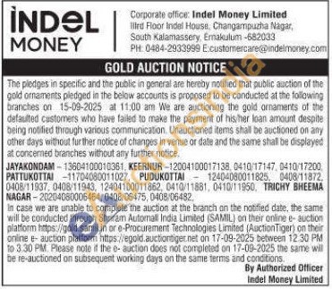 Indel money ltd Gold Auctions Auction in Ariyalur
