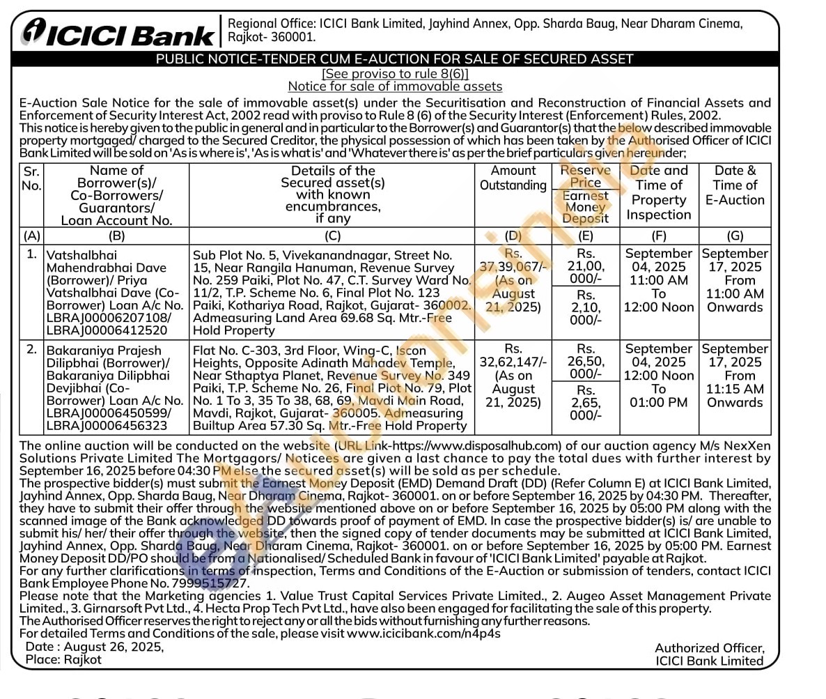 Flat No. C-303, 3rd Floor, Wing-C, Iscon Heights, Opposite Adinath Mahadev Temple, Near Sthaptya Planet, Revenue Survey No. 349 Paiki, T.P. Scheme No. 26, Final Plot No. 79, Plot No. 1 Το 3, 35 Το 38, 68, 69, Mavdi Main Road, Mavdi, Rajkot, Gujarat-360005. Admeasuring Builtup Area 57.30 Sq. Mtr.-Free Hold Property