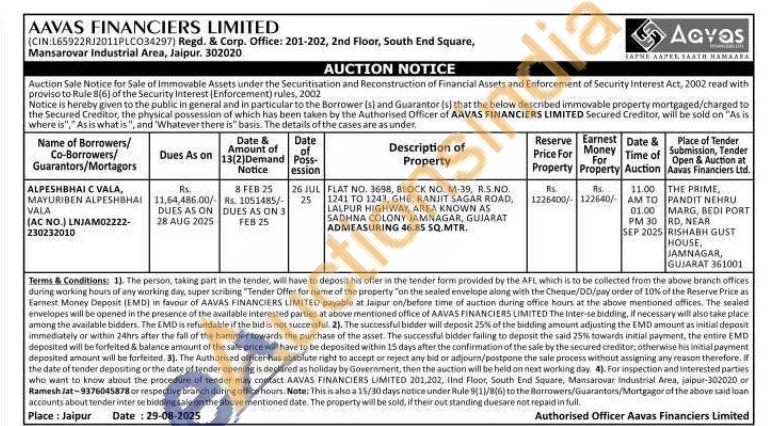 Property of Flat no 3698, BLOCK NO, M-39, R.S.NO. 1241 ΤΟ 1243, GHB, RANJIT SAGAR ROAD, LALPUR HIGHWAY, AREA KNOWN AS SADHNA COLONY JAMNAGAR, GUJARAT ADMEASURING 46.85 SQ.MTR.
