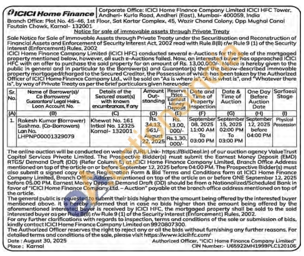 Property of Khewat No. 161 Intkal No. 12325 Karnal-132001