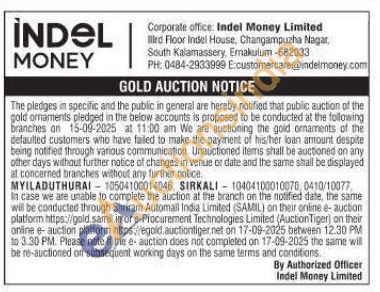 Indel money ltd Gold Auctions Auction in Ernakulam