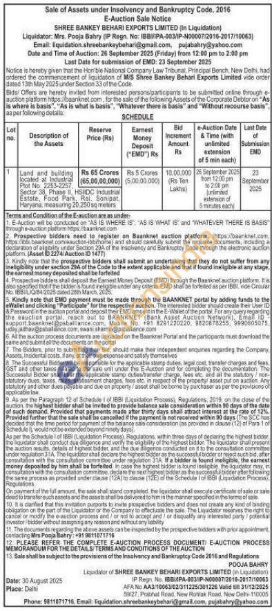 Land and building located at Industrial Plot No. 2253-2257 Sector 38, Phase, HSIIDC Industrial Estate, Food Park, Ral, Sonipat Haryana, measuring 20.250 sq meters