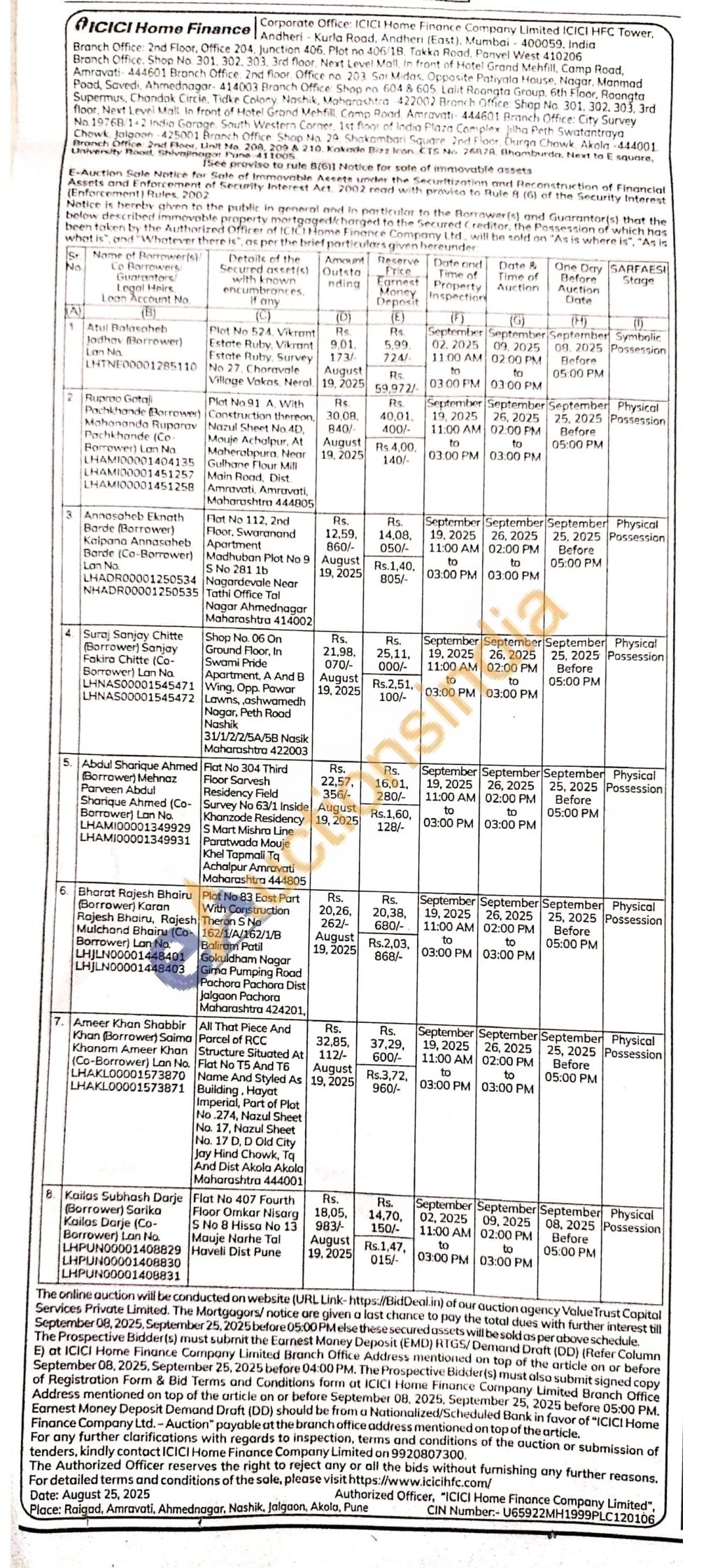 7) All That Piece And Parcel of RCC No. Structure Situated At 70 Flat No T5 And T6 71 Name And Styled As Building. Hayat Imperial, Part of Plot No.274, Nazul Sheet No. 17, Nazul Sheet No. 17 D, D Old City Jay Hind Chowk, Tq And Dist Akola Akola Maharashtra 444001