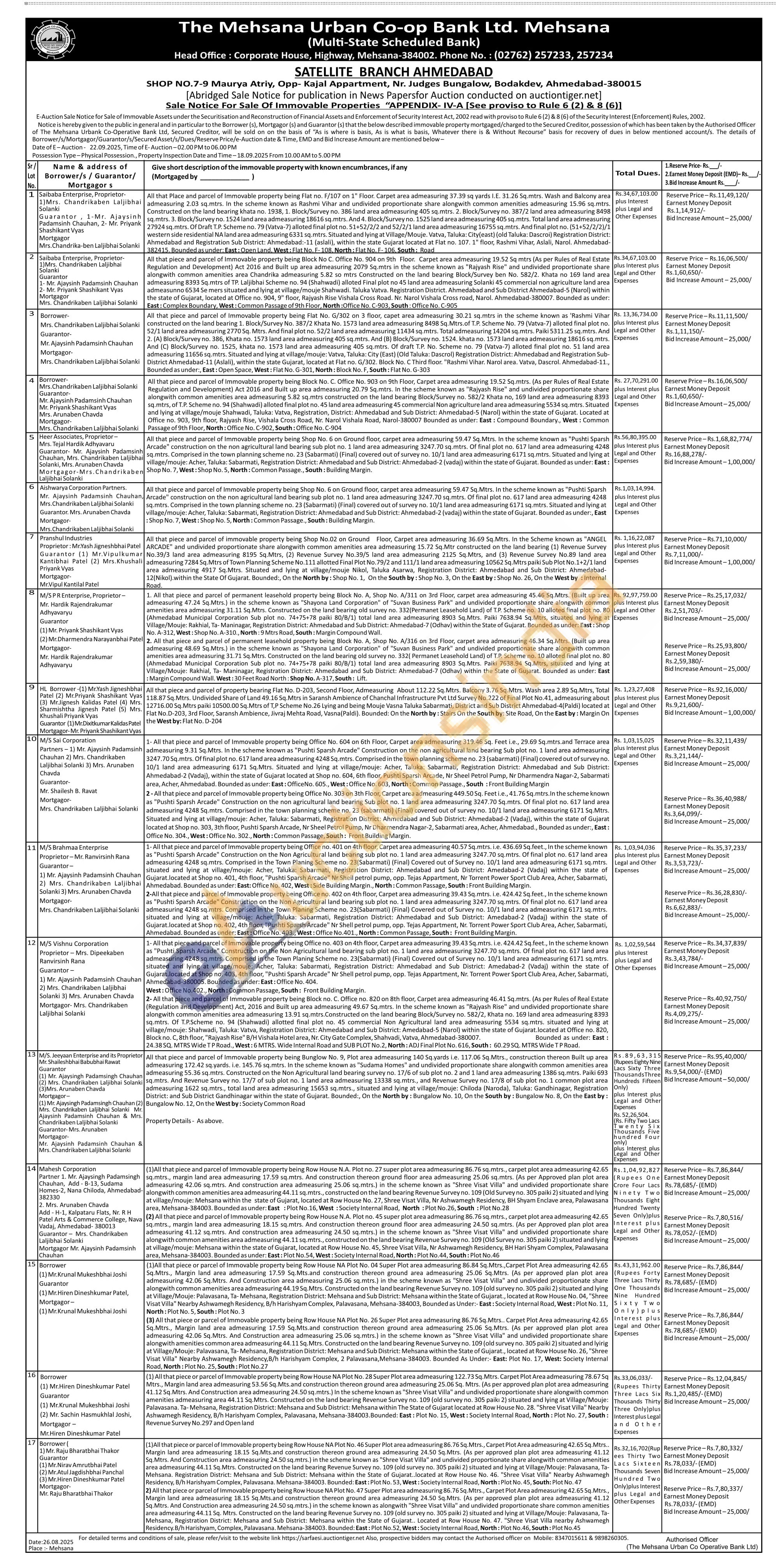 2 - All that piece and parcel of Immovable property being Office No. 303 on 3th Floor, Carpet area admeasuring 449.50 Sq. Feet i.e., 41.76 Sq.mtrs.In the scheme known as "Pushti Sparsh Arcade" Construction on the non agricultural land bearing Sub plot no. 1 land area admeasuring 3247.70 Sq.mtrs. Of final plot no. 617 land area admeasuring 4248 Sq.mtrs. Comprised in the town planning scheme no. 23 (sabarmati) (Final) covered out of survey no. 10/1 land area admeasuring 6171 Sq.Mtrs. Situated and lying at village/mouje: Acher, Taluka: Sabarmati, Registration District: Ahmedabad and Sub District: Ahmedabad-2 (Vadaj), within the state of Gujarat located at Shop no. 303, 3th floor, Pushti Sparsh Arcade, Nr Sheel Petrol Pump, Nr Dharmendra Nagar-2, Sabarmati area, Acher, Ahmedabad., Bounded as under:, East : Office No. 304.,West:Office No. 302.,North: Common Passage, South: Front BuildingMargin