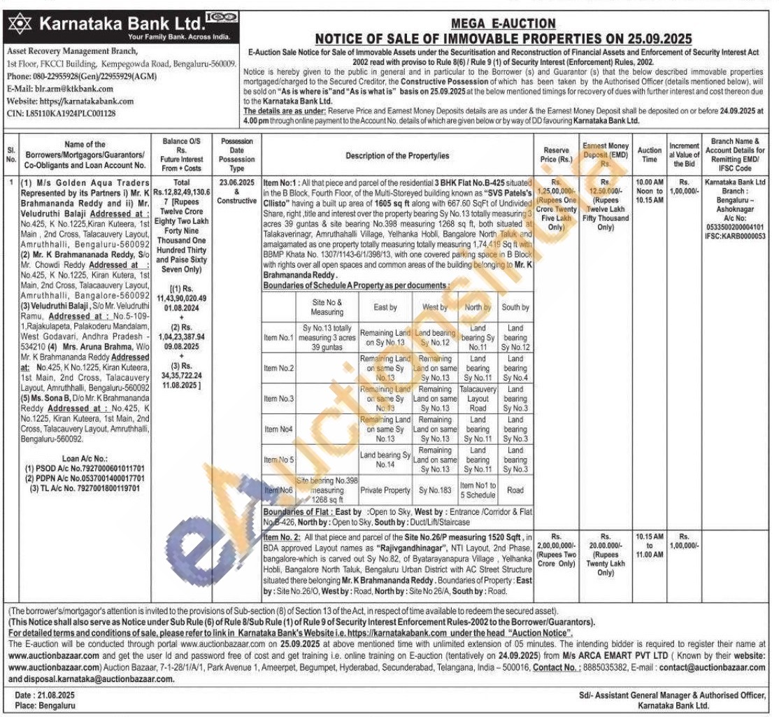 Item No. 2: All that piece and parcel of the Site No.26/P measuring 1520 Sqft, in BDA approved Layout names as "Rajivgandhinagar", NTI Layout, 2nd Phase, bangalore-which is carved out Sy No 82, of Byatarayanapura Village, Yelhanka Hobli, Bangalore North Taluk, Bengaluru Urban District with AC Street Structure situated there belonging Mr. K Brahmananda Reddy, Boundaries of Property: East by: Site No.26/0, West by: Road, North by: Site No 26/A, South by: Road