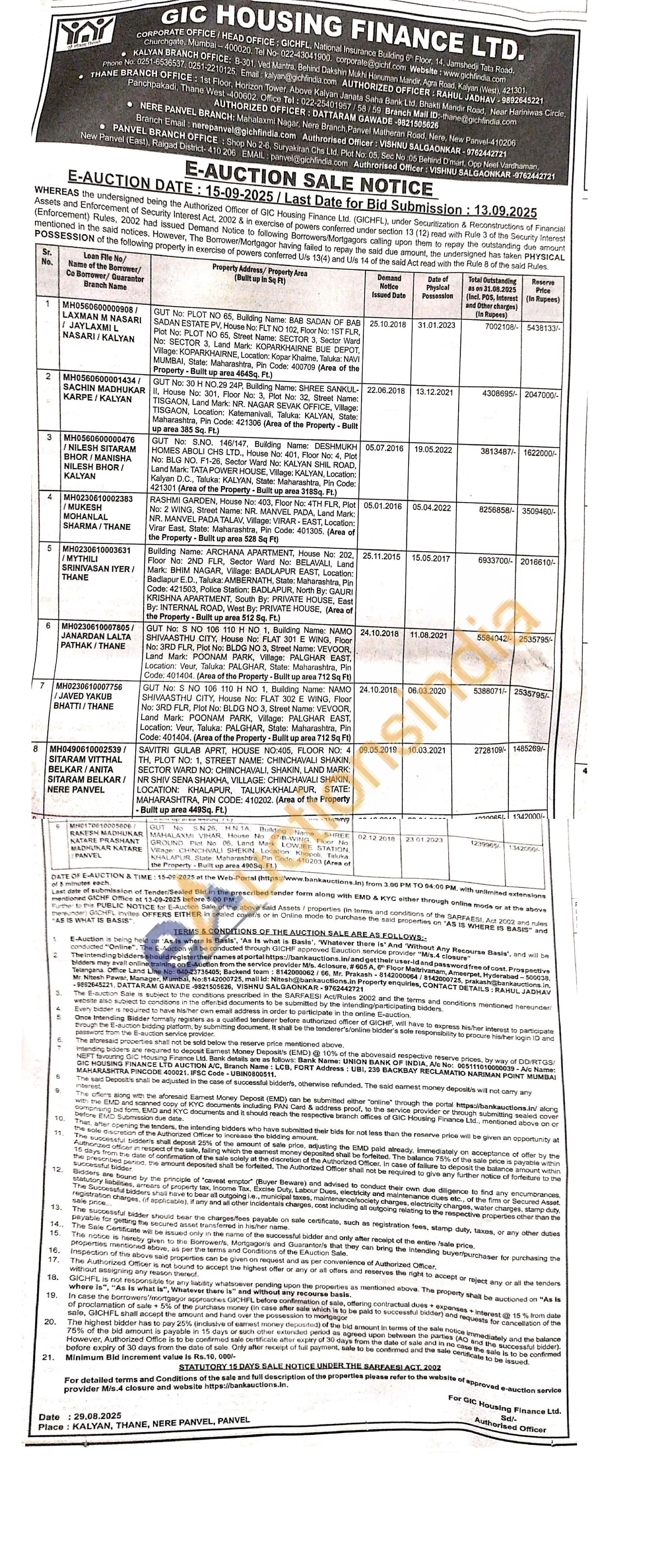 Building Name: ARCHANA APARTMENT, House No: 202, Floor No 2ND FLR, Sector Ward No: BELAVALI, Land Mark: BHIM NAGAR,Village: BADLAPUR EAST, Location: Badlapur E.D Taluka: AMBERNATH, State: Maharashtra, Pin Code: 421503, Police Station: BADLAPUR, North By: GAURI KRISHNA APARTMENT, South By: PRIVATE HOUSE, East By: INTERNAL ROAD, West By: PRIVATE HOUSE, (Area of the Property-Bullt up area 512 Sq. Ft.)