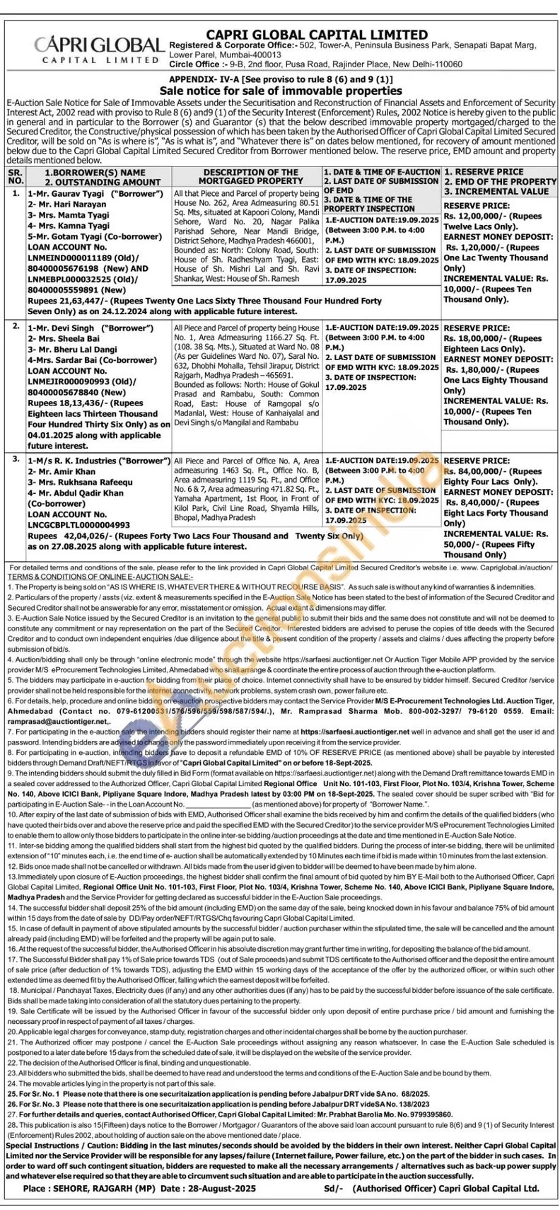 All Piece and Parcel of property being House No. 1, Area Admeasuring 1166.27 Sq. Ft. (108. 38 Sq. Mts.), Situated at Ward No. 08 (As per Guidelines Ward No. 07), Saral No. 632, Dhobhi Mohalla, Tehsil Jirapur, District Rajgarh, Madhya Pradesh-465691. Bounded as follows: North: House of Gokul Prasad and Rambabu, South: Common Road, East: House of Ramgopal s/o Madanlal, West: House of Kanhaiyalal and Devi Singh s/o Mangilal and Rambabu